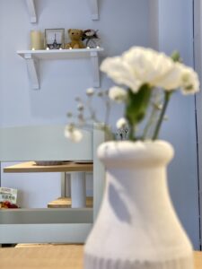 店内白基調で可愛いくまが色んなところにいて少しメルヘンな感じもある雰囲気。