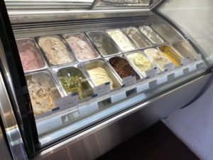 この日は雨の日でも雪の日でも無く快晴でした。同じ通りにある窯焼きパンのヴェルジネバッカーノとカフェ崖の上に行った後でしたので、ジェラートは控えめにダブルにしました。