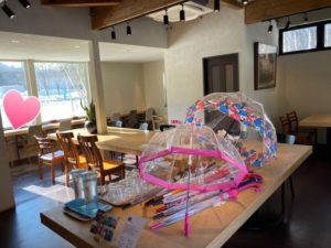 店内は雨の日と雪の日にちなんで可愛い傘が置いてあったりします。