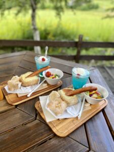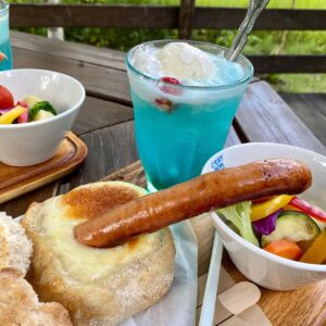 そして今回注文したのは人気メニュー「チーズフォンデュセット」と「クリームソーダ(青い池)」にしました。