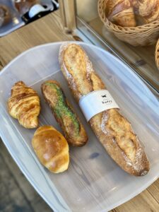 「毎日のクロワッサン」はバターの香りがふわーっと広がるのが良い。「harryの塩パン」こちらもバターの香りがたまらん!塩が旨みを引き出しているし、もちもち食感が好き。