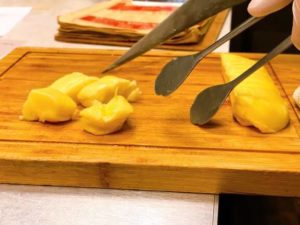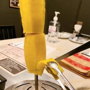 イケメン外国人のパサドールがその場で肉を切り落としてくれるのでマイトングで受け取ります。どんどん切ってくれるので、必要分確保したらストップと言いましょう。