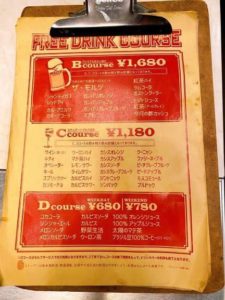 まずは飲み物。1180円以下のコースが飲み放題になるとのこと。