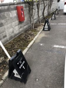 駐車場はビルの裏。札幌トヨペットクルマックス琴似店向かいの小道に入って右に大きな駐車場があります。中に入って左奥に立て看板が立っているのでわかると思います。