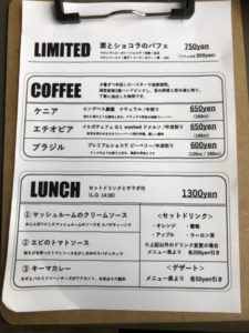 | チョコ×珈琲ゼリーパフェ | 300円 小400円 / 900円 |