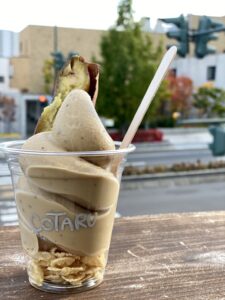 芋パフェ、黒糖紅はるかソフトへ変更。