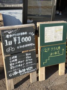 レンタサイクル(電動自転車貸出)、荷物預かりお届け、観光案内の他、カフェとしても利用できる。