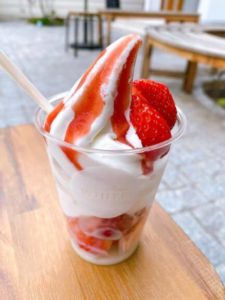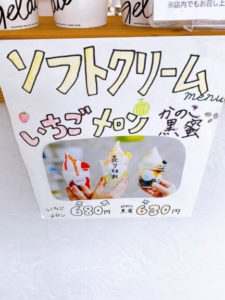 ◇ソフトクリーム いちご680円 かのこ黒蜜630円