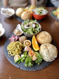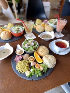 自家製パン2つとおかずが10種類ぐらいにスープとドリンクまで付いてて1000円切ってしまう超お得なランチ!