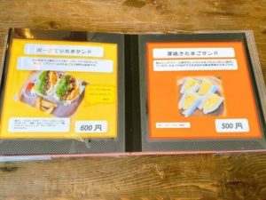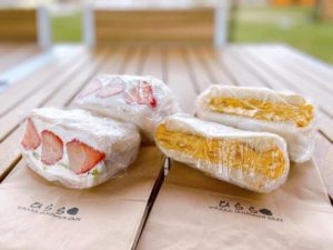 今回は新商品の厚焼きたまごサンドと苺のフルーツサンドを注文。