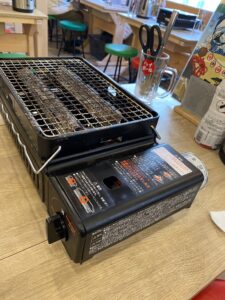 店内はカウンターとテーブル席があって各テーブルに海鮮を焼くための焼き台が設置されてました。