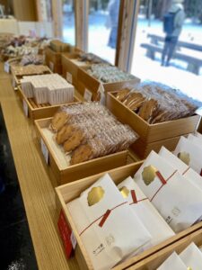 店内には人気の福かしわ等オリジナルのお菓子も販売してます。