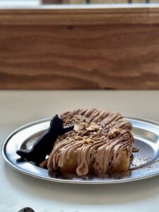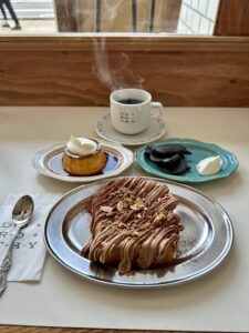 こちらのカフェの特徴である黒猫のクッキーや珍しいモンブラントーストとカフェ定番のプリン。