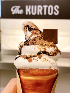 ハンガリーの焼き菓子クルトシュを北海道産の小麦粉で作りソフトクリームやポテトサラダ等様々な味付けで提供する。