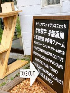 江丹別にある伊勢ファームのグラスフェッドミルクを100%使ったソフトクリームを提供。