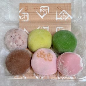 今回お持ち帰りしたのは、いちご大福(大)、ピスタチオ大福、チョコ大福、よもぎ大福、さくら大福、あずきバター大福。