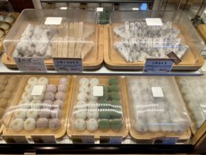 ・色とりどり豊富な種類の大福やお団子を取り扱っており人気のお餅専門店。