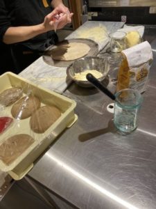 リキッドコーヒーを練り込んだピザ生地を店内カウンター前で作っている所が見られます。