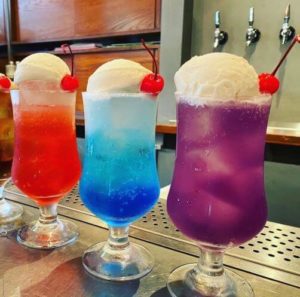 青いキャラメルクリームソーダ(赤・紫・ガラナ) 各650円
