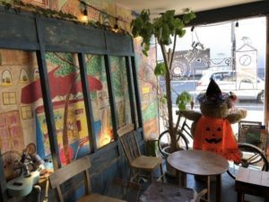 ・壁に絵が描いてあったり自転車など一つ一つの置物にこだわりがある店内