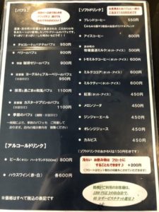 | 自家製 カスタードプリンのパフェ(数量限定) | 1100円 |