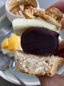 今回、エビクリームスープとクロワッサンも食べたかったけど、ご飯食べた後だったのでスコーンサンドを注文しました。
