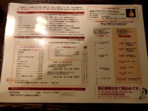【Beers】・ビンタン530円・サッポロ黒ラベル500m中瓶400円・アサヒスーパードライ500m中瓶400円・キリン一番搾り500m中瓶400円・サッポロドラフトワン350m缶280円・キリンのどごし<生>350m缶280円・ノンアルコールビール280円