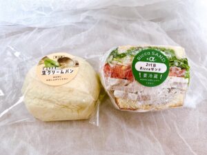 今回お持ち帰りしたのは、二代目リッカサンドと限定ピスタチオ生クリームパン。