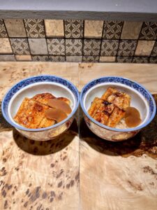 六本木のみやけさんという和食親善大使のお店で150年継ぎ足したうなぎのタレを使用。皮パリパリ、身がふっくら!