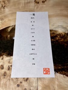 山わさびを長くすりおろしする事で辛みを抑え香り高くなるという。新感覚の味わい。