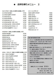 ※お持ち帰りメニューの一例。サンドイッチを2種類選んで注文します。