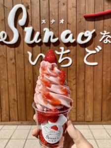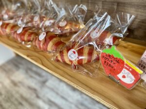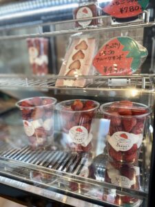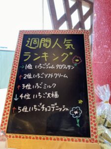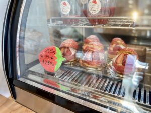 ・いちごの帽子パンに加えいちごソフトクリーム等いちご尽くしのお店。