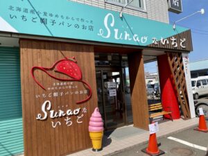 札幌桑園のパン屋さん。いちごの帽子パンに加え、いちごソフトクリームやいちごシュークリーム等いちご好きには堪らないいちご尽くしのお店。