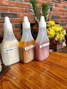 サラダドレッシングはタルタル・すりおろし野菜・梅の3種類があるのでお好みで試してみると良いです。